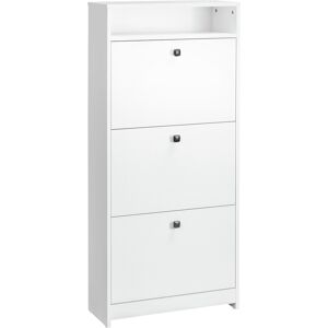 Homcom Scarpiera Salvaspazio 3 Scompartimenti per 18 Paia di Scarpe, Mobili Ingresso Portascarpe per Ingresso Stretto in Legno, Bianco