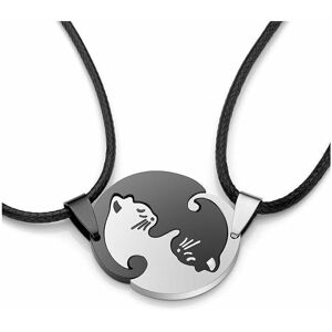LANGRAY Gioielli Collana coppia in acciaio inossidabile con ciondolo gatto Catena coppia Tai Chi Yin e Yang Puzzle Partner Catene Portachiavi Gatto