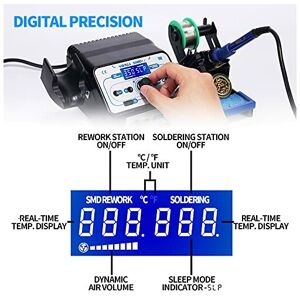 - Doppia Funzionalità 2 in 1: Integra una stazione saldante e una stazione ad aria calda, permettendo di gestire un'ampia gamma di operazioni di saldatura e dissaldatura con un unico dispositivo.