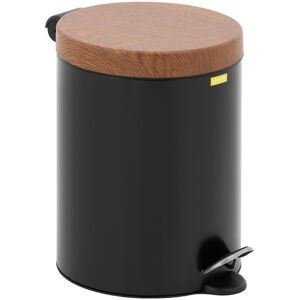 ulsonix Pattumiera a pedale con coperchio in legno - 5 L - Nera - Acciaio rivestito ULX-OAK-5B