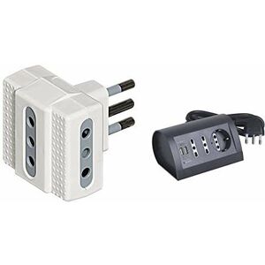 BTicino - S3610G Adattatore Tris con 1 Presa Tedesca 2 Prese, 10A, Colore Antracite, Nero + S3711GU Multipresa da Scrivania con Presa USB, 1.5A, Cavo