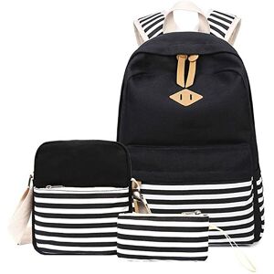 PERLE RAREIT Zaino a righe in tela causale Zaini per adolescenti carini per borsa da scuola per ragazze , nero