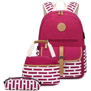 PERLE RAREIT Zaino in tela per ragazze con custodia per il pranzo Zaini casual per college da donna Borsa da scuola per bambini Borsa per laptop a righe (rosso)