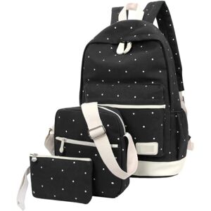BENOBBY KIDS Zaino per adolescenti Set Borsa da scuola in tela a pois Set per ragazze Ragazzi Zaino 3 in 1 nero 1 Set Zainetto leggero Zaini