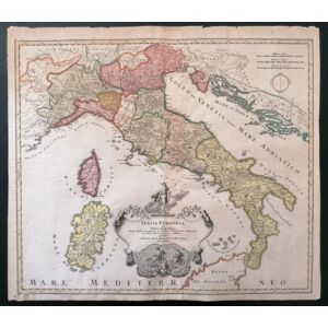 ART Italia Cursoria Seu tabula geographica in qua . a Ioanne Bapt. Homanno S. C. M. Geogra cun Privilegio (Norimbergae) Soc. Cas. Maj. HOMANN, GIOVANNI B