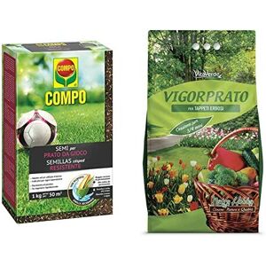 COMPO® COMPO SEMI per Prato da Gioco, Miscela Speciale, Seme Ricoperto & VIGORPRATO UNIVERSALE, concime per prati per tutto l'anno, kg 5