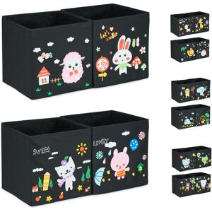 RELAXDAYS Cestino Pieghevole per Bambini, Set da 4 Cesti Portagiochi, Sticker, Design B, DIY, 31x31x31 cm, colorati