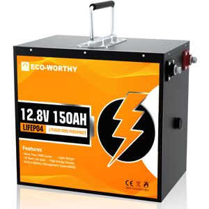 ECOWORTHY - ECO-WORTHY Batteria al litio ricaricabile 12V 150Ah LiFePO4 con oltre 3000 cicli profondi e protezione BMS per sistema solare, camper,