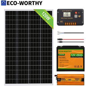 ECOWORTHY - ECO-WORTHY Kit completo di pannello solare da 120 W con batteria ricaricabile al litio LiFePO4 da 20 Ah 12 V, regolatore di carica 30 A,