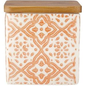 LADELLE Barattolo in ceramica con motivi etnici rosa salmone e tappo ermetico, tre fantasie - Modello: mod.B
