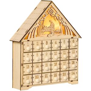Homcom Calendario dell'Avvento in Legno con 24 Cassetti, Decorazione Natalizia con Presepe Intagliato e Luci, 26.6x6x30cm